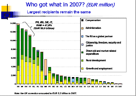 And yet, all in all, the EU has had a decisively positive impact on all members, the economic benefits have been real. The newfound freedom to travel, work and study anywhere in Europe was a chance for young people especially. In relative terms, the so-called "social" element in the EU budget was tiny, less than 1 per cent of the European-area GNP. But from the late 1980s on, the budgets took on a distinctly redistributive quality, transferring resources from rich regions to poorer ones and contributing to a steady reduction in the aggregate gap between rich and poor. The advantage of the European idea in the decades after the foundation lay precisely in its imprecision. Of course now it is exactly this formulaic vagueness combined with much too precise details of EU legislative directives which has highlighted the democratic deficit. It seems difficult for Europeans to care about a Union whose identity was for so long unclear and which at the same time seems to influence every aspect of their daily lives. By not being a state the EU has been able to bind nearly 500 million people in a single, peaceful and loosely articulated community, where the citizens' primary loyalties remain to the country in which they live, whose laws they obey, whose language they speak and whose taxes they pay.