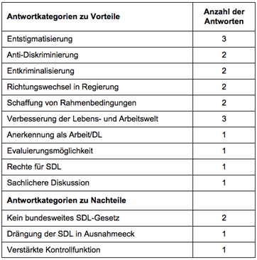 Tabelle 3: Ergebnisse bezüglich der Gesetzeslage zur Sexualdienstleistung in Österreich