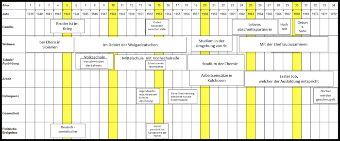 Abbildung 2: Ausschnitt aus dem biografischen Zeitbalken von Herr Sokov (eigene Darstellung)