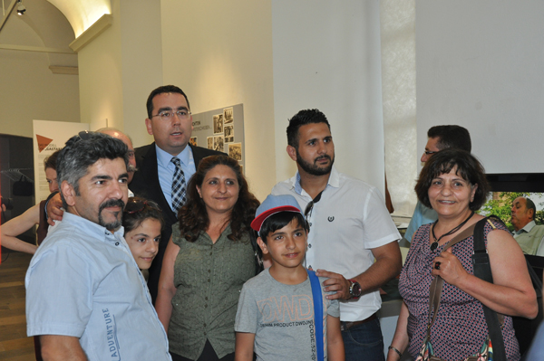 Abbildung 3: Familie Firat bei der Ausstellungseröffnung mit dem türkischen Generalkonsul Tayyar Kagan Atay (Quelle: Büro für Diversität, St. Pölten)