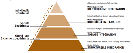 Laut dem OÖ Integrationsleitbild stellt die strukturelle Integration, welche die Bereiche Bildung, Arbeit, Schule, Recht, Wohnen, Soziale Sicherung und Partizipation beinhaltet, das Fundament von Integration dar (vgl. Güngör/Riepl 2008). Dies veranschaulicht Abbildung 1.