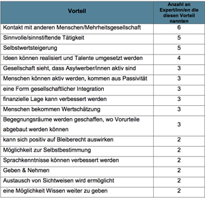 Tabelle 2: Antworten auf die Frage nach möglichen Vorteilen für Asylsuchende