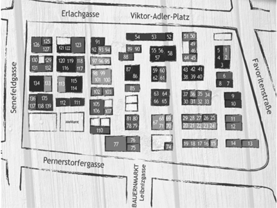 Abbildung 1: Plan Viktor-Adler-Markt (Wirtschaftskammer Wien, Marktmanagement 2014)